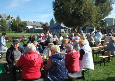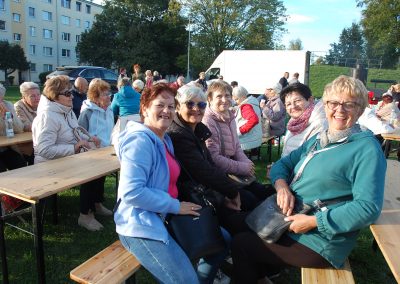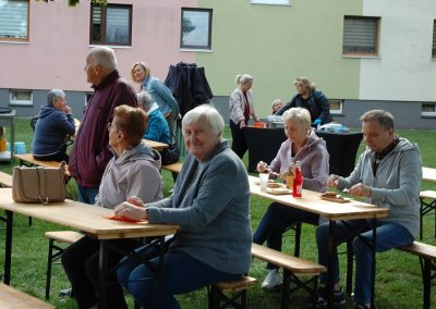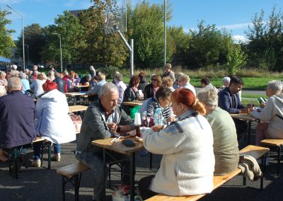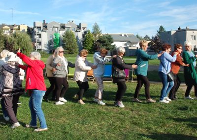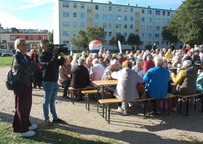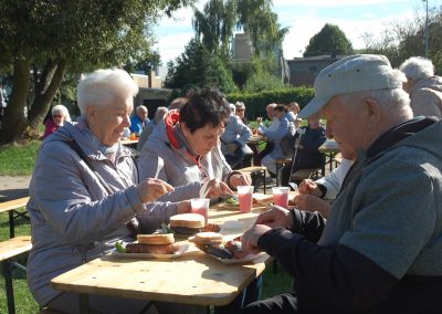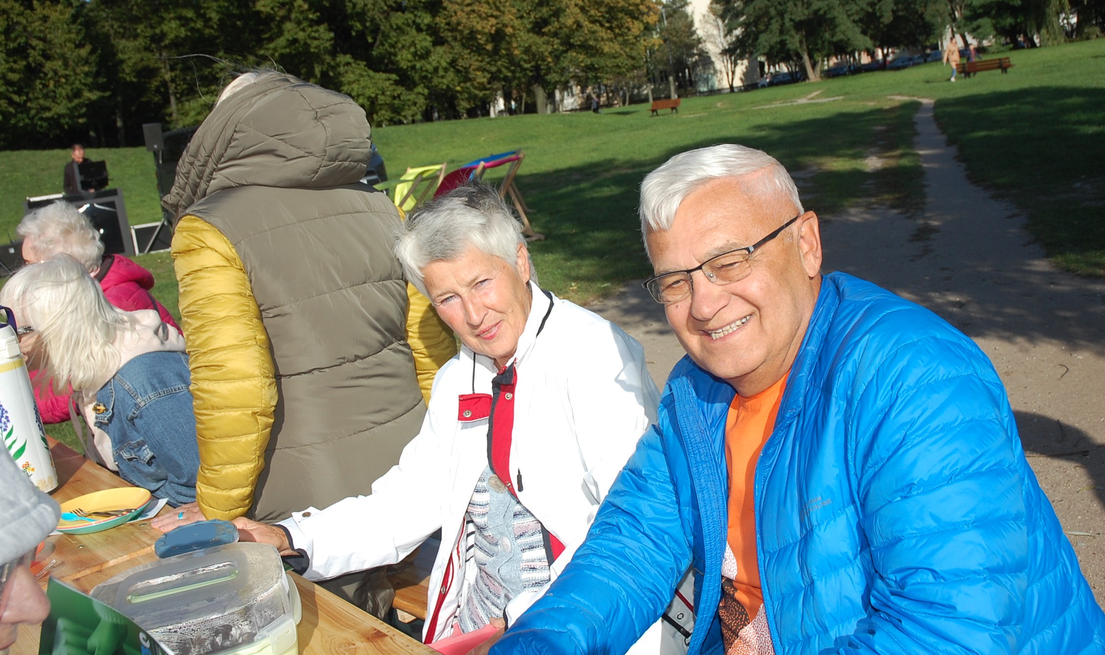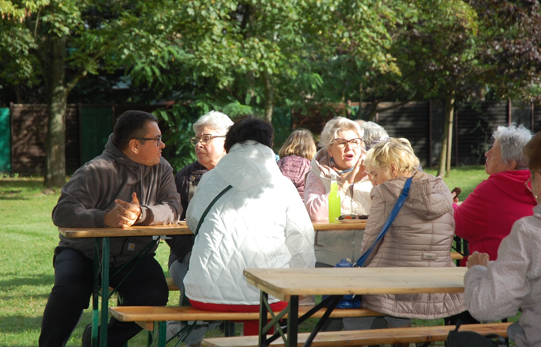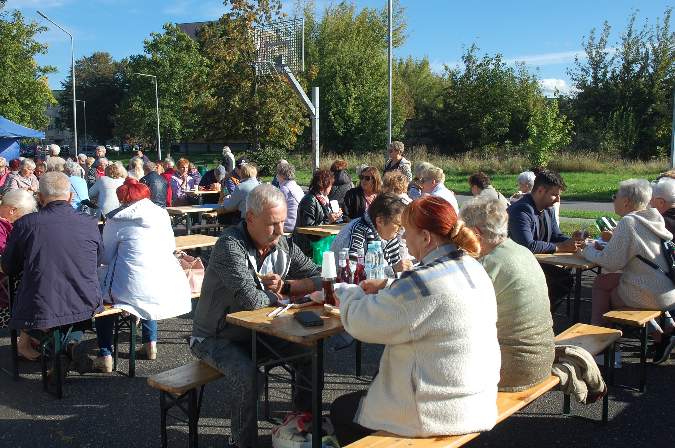 Wiatr wiał w plecy, kiełbaski pachniały, muzyka zachęcała do tańca, gwar rozmów unosił się w powietrzu. Dziękujemy przemiłym Seniorom za wspaniałe spotkanie w jesiennym słońcu. Moc jest z Wami! Zapraszamy za rok!